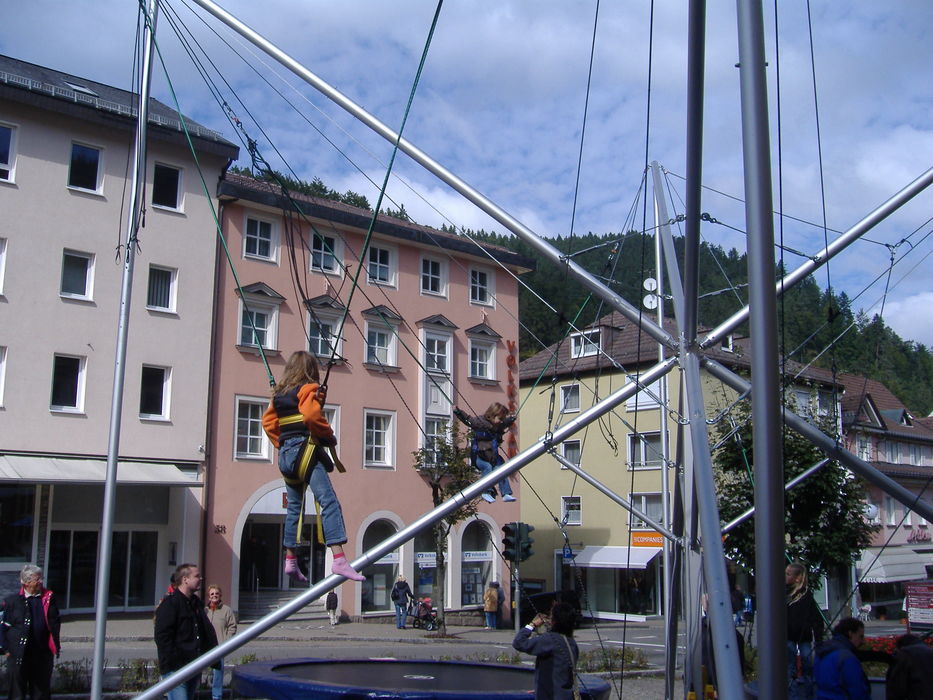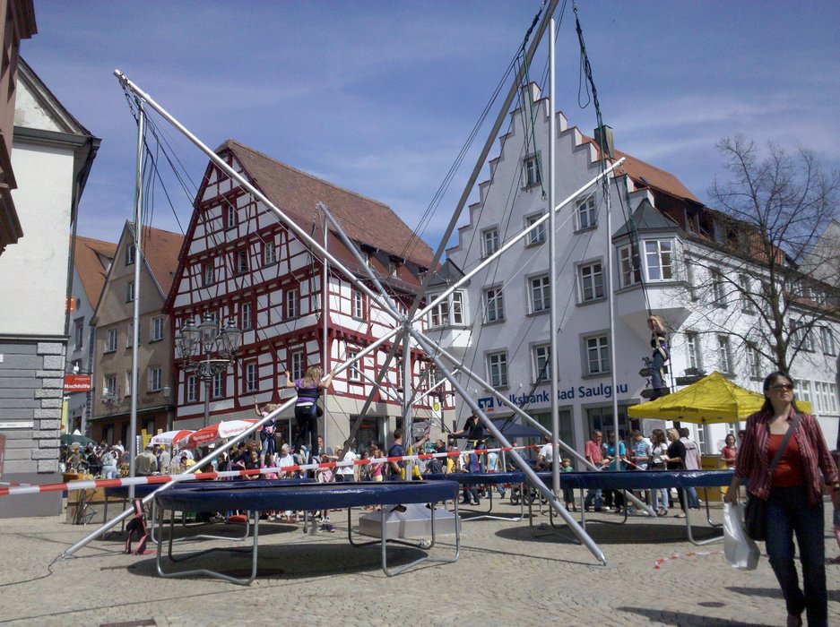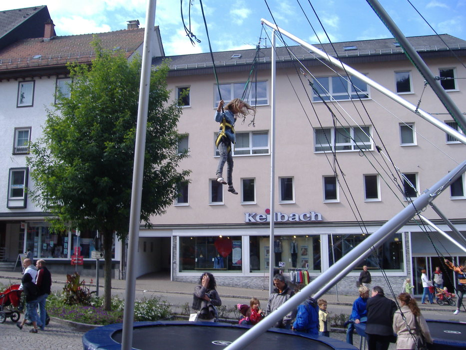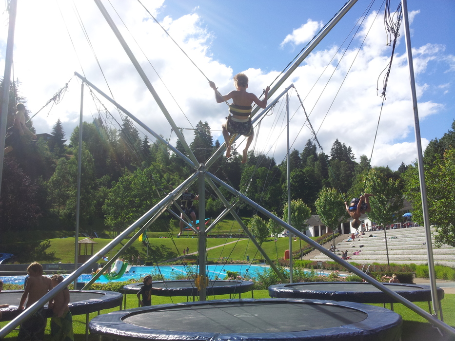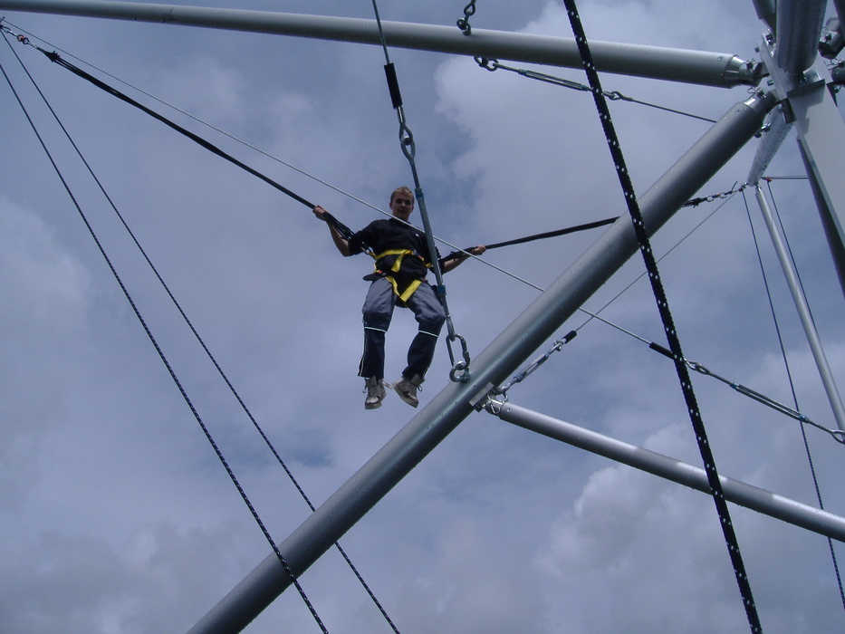 Bis zu neun Meter hoch gehen die Sprünge auf dieser Anlage - und genau so weit geht es wider hinunter. Dabei ergibt sich am höchsten Punkt des Sprungs das Gefühl von Schwerelosigkeit. Ein schönes und einmaliges Erlebnis.